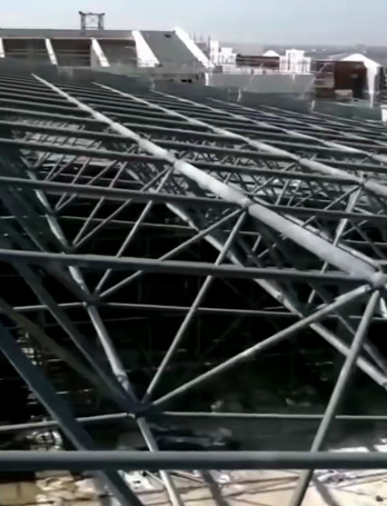 台州椒江区下陈中学风雨操场网架部分顺利结束